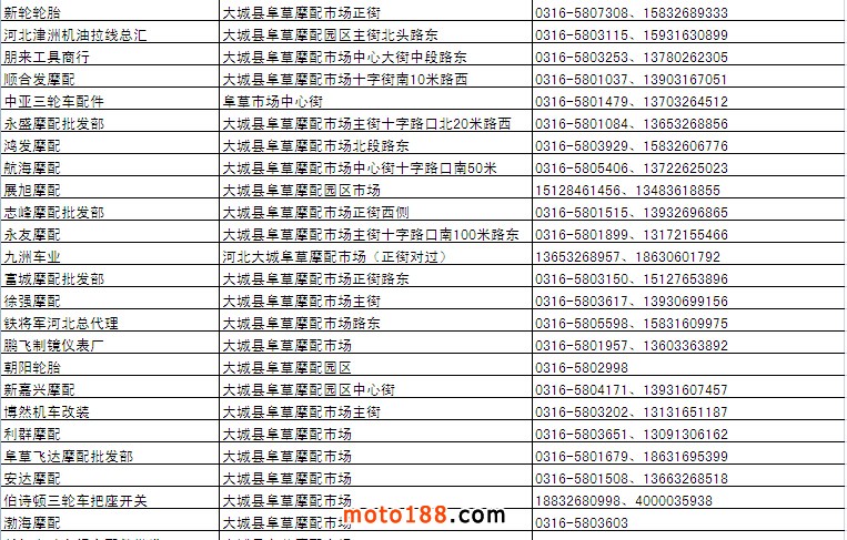 各摩配市場(chǎng)詳細(xì)資料請(qǐng)注冊(cè)我們的VIP會(huì)員咨詢 電話:0515-88436994 QQ:309362965、842467029、1051652573