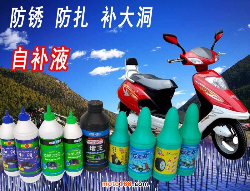 生產的系列品牌輪胎自補液補胎直徑達8毫米,補好以后加氣不裂口,循環補胎,產品PH值為7,屬中性產品,不含酸堿對鋼圈不起腐蝕作用,不易生銹,防凍效果好非常適合北方客戶使用。瓶子柔軟,全新款式蓋子,更容易加裝。一千毫升特別適合出口產品需要的客戶,可根據客戶要求調配和貼牌生產。公司具有正規生產營業執照,可開發票。