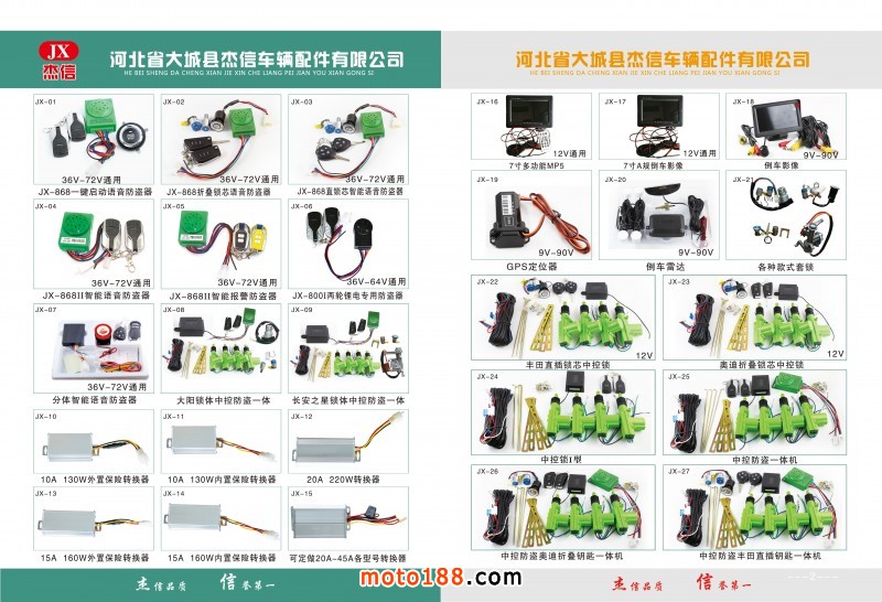 大城縣杰信車輛配件有限公司專業生產各款式喇叭,遙控防盜報警器,閃光器,繼電器,轉換器,中控鎖,倒車影像,倒車雷達,旋檔開關,GPS定位器等全車電器產品,歡迎新老朋友來電洽談訂購!