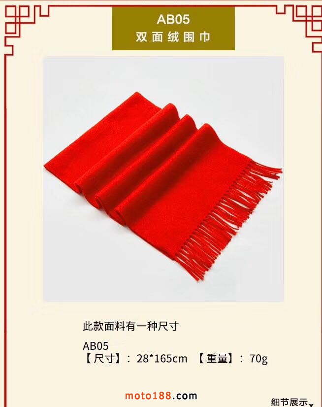 紅色一直有著喜慶、活力的寓意,且看上去非常搶眼,起著烘托的作用,這也是為什么一些會議、開幕、慶典等統(tǒng)統(tǒng)會披著紅圍巾或作為禮品。可印字刺繡,