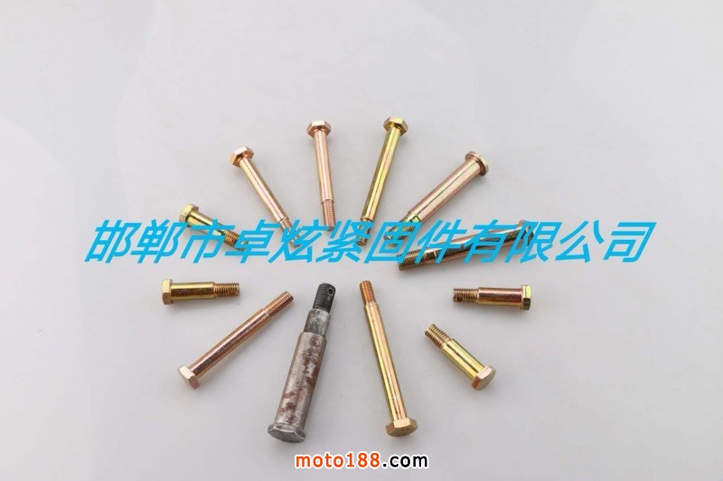 本廠主要生產的產品有:輪轂螺栓、搖臂軸系列、消聲器螺栓、電動自行車電機軸、減震連體活塞桿毛坯、電動自行車中軸、油管接頭螺栓、臺階螺栓、蓋母、開花母系列定做各種高難度高精度異形件?