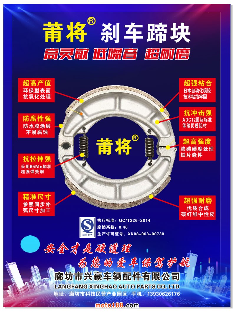 。公司擁有完善的管理體系和質量控制體系,嚴把質量關,把質量比作公司的生命,把信譽比作與客戶溝通的橋梁。公司產品性能穩定,質量可靠,價格合理,深受廣大消費者的一致好評!我們以尋求高品質為基礎,以誠信經營為理念,歡迎國內外摩配界精英蒞臨指導!現誠征全國空白地區合作伙伴!承接外貿訂單OEM貼牌。