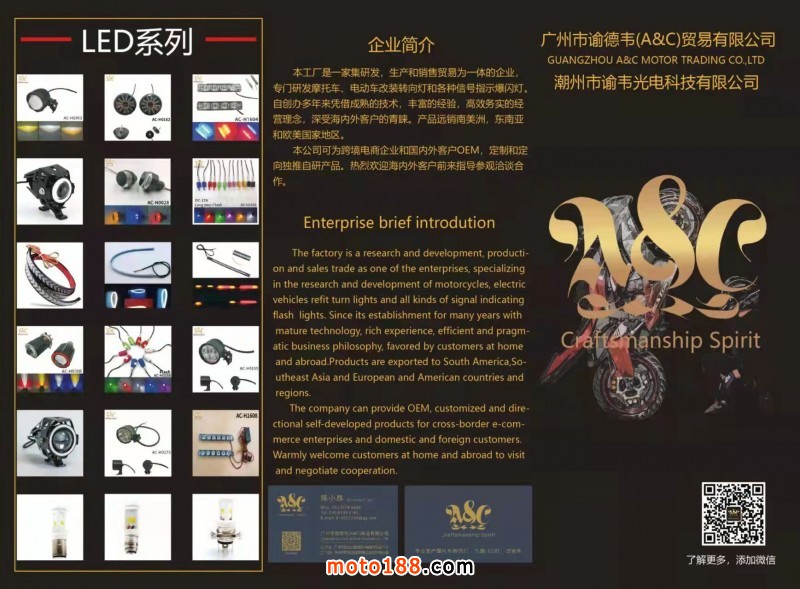 本工廠是一家集研發(fā),生產(chǎn)和銷(xiāo)售貿(mào)易為一體的企業(yè),專(zhuān)門(mén)研發(fā)摩托車(chē)、電動(dòng)車(chē)改裝轉(zhuǎn)向燈和各種信號(hào)指示爆閃燈。自創(chuàng)辦多年來(lái)憑借成熟的技術(shù),豐富的經(jīng)驗(yàn),高效務(wù)實(shí)的經(jīng)營(yíng)理念,深受海內(nèi)外客戶(hù)的青睞。產(chǎn)品遠(yuǎn)銷(xiāo)南美洲,東南亞