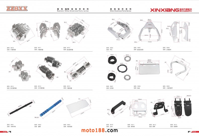 腳蹬、方向把壓緊塊、掛鉤、鋁單撐、大燈散熱片等鋁件