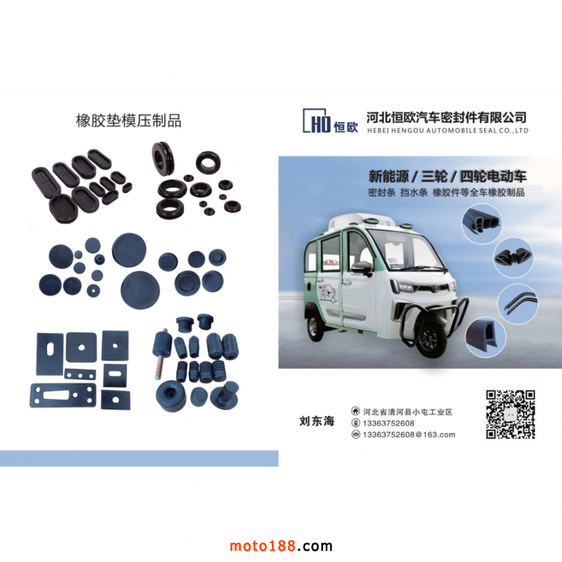 【河北恒歐汽車零部件有限公司】專業(yè)生產(chǎn)各種新能源三輪、四輪全車密封條、橡膠制品、注塑件、模壓件等。