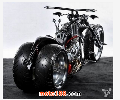 Twisted Evil摩托車(chē)采用的是霸氣的四輪設(shè)計(jì),碩大的雙后輪給人一種十分強(qiáng)悍的感覺(jué)。車(chē)身整體采用的是黑銀相間的配色,大量銳利的裝飾顯得侵略性十足。從這點(diǎn)來(lái)說(shuō),Twisted Evil確實(shí)蠻邪惡的。