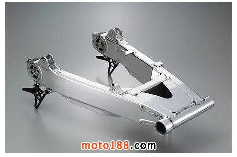 看似結(jié)構(gòu)簡(jiǎn)單的后搖臂其實(shí)是重要的橋梁,連接著四個(gè)重要的連接點(diǎn),包括后避震、后避震連桿、后搖臂樞軸(后搖臂與車架連接處)以及后輪。