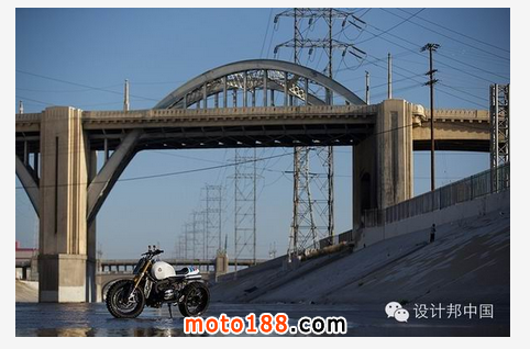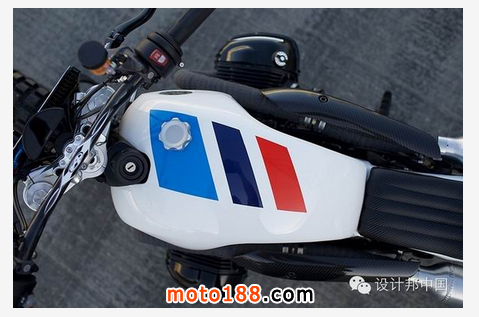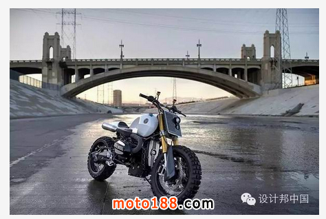 機(jī)油冷卻器的位置也上移了,到了靠近前大燈的位置,進(jìn)一步減少了對原裝元素的改變。為了使改裝套件更加的完美,前后輪上都使用了運動輪胎,抓地力大大增強(qiáng),操控性能也進(jìn)一步提升。定制的鋁制油箱和尾部整流罩都是完全由手工打造,以盡量降低車子的重量從而增加車子的靈活性。一些重要的電子和機(jī)械部件也隱藏在油箱部位,使得車子外觀更加整潔,同時也使得這些重要部件得到進(jìn)一步保護(hù)。車把換成了BMX的V型碳纖維車把,在增強(qiáng)騎行舒適性的同時,還提高了快速通過泥濘路段時的操控性。這家南加州定制工廠致力于將這輛由BMW改造而來的摩托打造成現(xiàn)代化的出街利器。