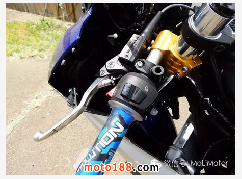 R3 作為小跑車,雖然腳踏的設(shè)定還算合適,但上半身的姿勢卻太過正立,因此這輛R3 除了將椅墊改硬;依據(jù)車手身高調(diào)整外,還改了低于三角臺的分離把,雖然如此一來,需要進行把車殼切開與儀表上移的工程,換來就是低趴的仿賽騎姿,以及過彎側(cè)掛時的順暢性,另外為了在油門的操控上能獲得更佳的手感,這輛R3 也換上了Polini 出品的EVO競技握把。