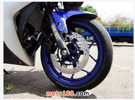 R3 的前后剎車在一般道路上已經(jīng)足夠使用,因此在這輛R3 的制動系統(tǒng)上并未做更動,但是在經(jīng)過賽道試車后發(fā)現(xiàn),原廠的卡鉗在散熱方面還是無法滿足需求,看來對于熱血操駕需求的朋友們更換一組對四卡鉗是必然的改裝項目了。
