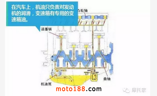 而摩托車不同,由于追求緊湊設(shè)計,所以摩托車的發(fā)動機(jī)、離合器、變速箱三個腔體是相連的,因此發(fā)動機(jī)、離合器、變速箱都是靠摩托車潤滑油來潤滑的。