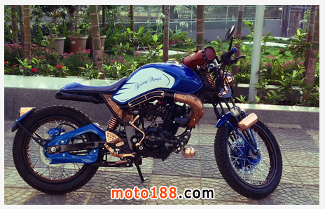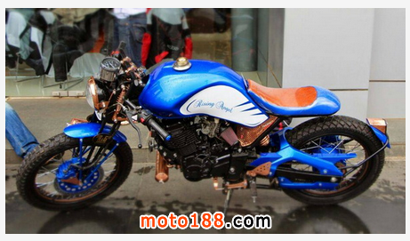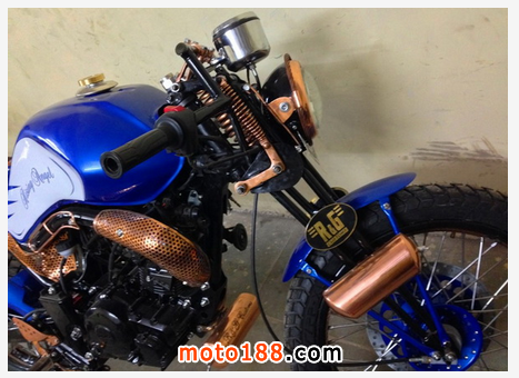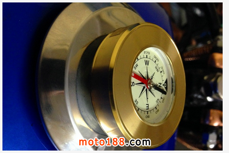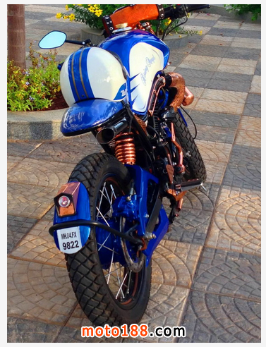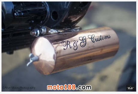 來自印度孟買的定制公司 R & G 作品 Rising Angel “ 天使瑞星 ”,以一部當地生產的 Yamaha FZ16 為基礎制作而成,但除了發動機沒有重大的變化之外,車體的各個部分皆已經 “ 面目全非 ”:采用了一個 “ 咖啡 ” 的外觀整體造型,梁架式的前懸掛,配有指南針的油箱蓋,19 英寸直徑的鋼線前輪框。尤其耀眼的是全車多處采用了黃銅為主材料、經過精加工而成的組件,制造出一種金壁輝煌的感覺,或許這就是我們對印度社會崇尚某些貴金屬的傳統印象罷了。