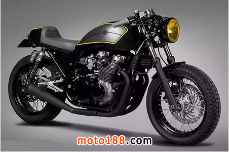 輪轂改為黑色輻條輪轂,車把降低的同時(shí)有一個(gè)向下的角度,典型的Cafe Racer車把,車尾部分改為單座加小駝峰。