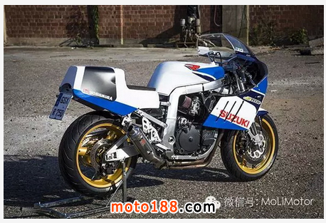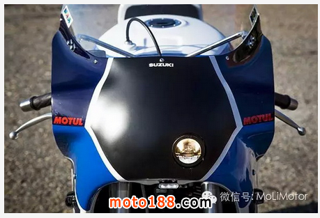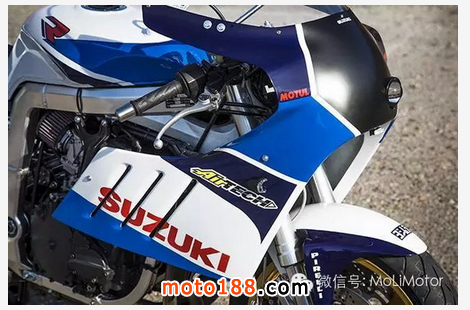 復古車配件,讓他成為終極的道路使用車. 他發現在美國有一家Airtech公司有生產整套AMA Yoshimura F1 復刻版整流罩, 馬上訂購把東西送到德國準備烤漆與貼紙的制作, 第一件事情就是把所有整流罩噴成北極白,Suzuki專用的配色,還有貼上贊助商貼紙!