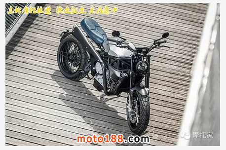 這輛Lara 800是基于MV Agusta Brutale 800打造,原車本來就擁有出色的性能,無論是機械還是電子件幾乎都用上了最好部件,因此基于此打造出的Scrambler性能毋庸置疑。Lara 800絕對是一輛陽剛氣十足的車,激進的車身設計向外界傳達出的訊息不言而喻。而手工打造的一體式鋁合金油箱及車座上包裹著高等級的藍色皮革,細致的做工加之完美的比例,又透出一股法蘭西式低調奢華。
