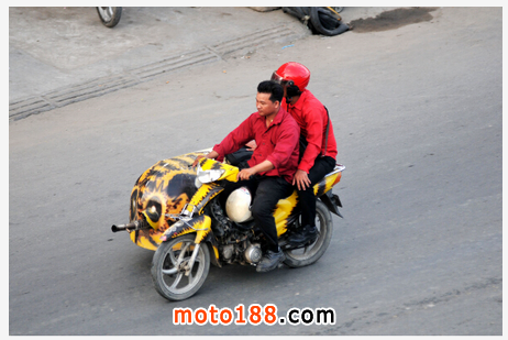 核心提示:豹紋+機(jī)關(guān)槍 東南亞風(fēng)格彎梁改造邊三輪