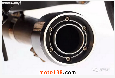排氣管出口也以六角螺絲點綴,讓排氣管不會只有圓型出口這么單調,兩缸共享此單一出口,并且因為沒有消音塞設計,所以排氣時的聲浪真的讓人為之震撼,不過雖說如此,這部分也可以恢復成原廠排氣管。