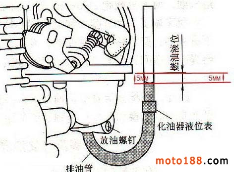二,在化油器的放油管上連一根較長的塑料管,管子超上。打開化油器浮子室的放油螺釘,直到油管中汽油上升到一定的高度。如果塑料管中油面高度離化油器浮子室的平面有2mm-5mm之間,就說明油面高度符合要求。