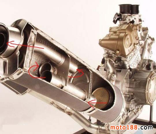 核心提示:雅馬哈國3電噴豪華版迅鷹發動機系統的剖面圖大家說的靜音管,指的就是結構是回壓的排氣管。大家說的回壓管,他的附屬效果那就是