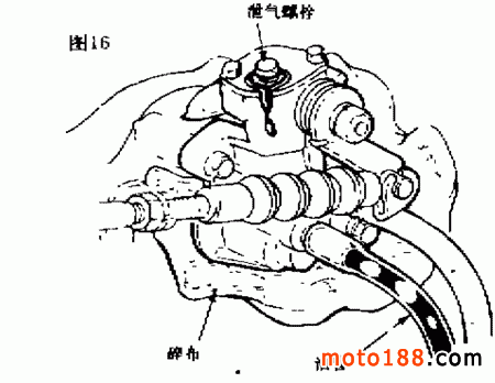 ( 2 )排泄機油泵內(nèi)的空氣使發(fā)動機熄火,將機油箱內(nèi)注滿機油,然后如圖 16所示,用碎布包住機油泵,擰松機油泵頂部的泄氣螺栓,當泄出的機油中不再有空氣氣泡時,再將泄氣螺釘擰緊。