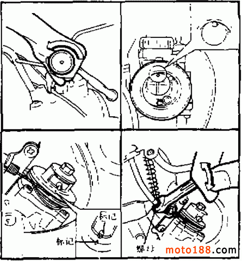 首先調(diào)整油門鋼索的自由間隙,其調(diào)整方法與 DX100 型摩托車相同。然后再做以下檢查調(diào)整。