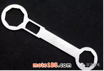 準備工具: 前減震拆卸扳手,取下前減震器上端的橡皮蓋,拔出止動環,取出蓋、墊片、內套管及減震彈簧等零件,然后將減震器內的液壓油倒干凈。