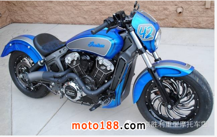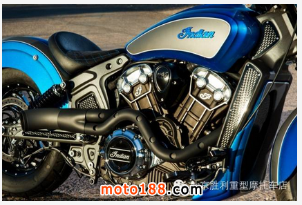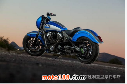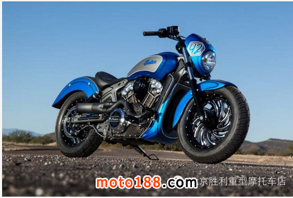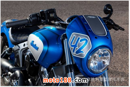 這輛名為“Scout 42”的印第安整體改裝風格簡單輕快,海藍色漸變糖果漆面極為清爽,造型簡潔,在寒冷初雪的2015帶來一股海洋暖流,下面來感受下。