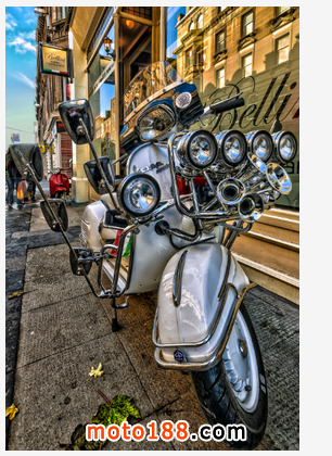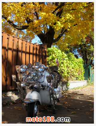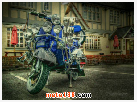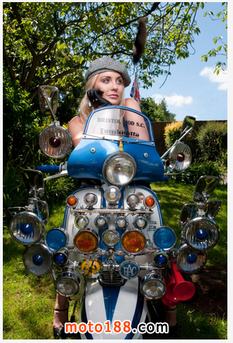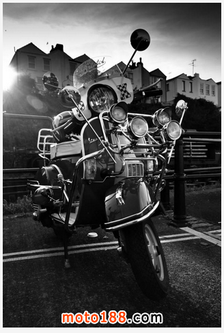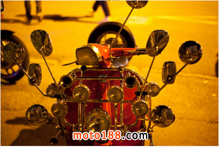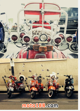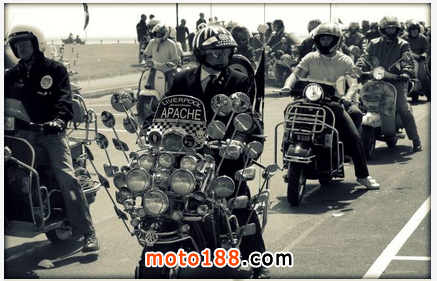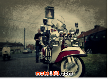 爾后,越來越多的低收入年輕人開始被MODS所吸引而加入這個行列,他們把對高級汽車的向往轉移到VESPA上,諸多英國高級汽車的裝飾件被拿來當裝飾品, 如JAGUAR、ROLLS-ROYCE等汽車部件均被MOD一族作為最佳裝飾品。而車燈成為其中最為流行的改裝件,當時一部資深MOD族的VESPA可能會出現十幾甚至幾十顆車燈!