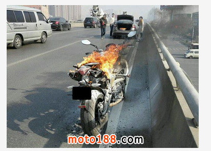 摩托車油路滲漏,容易引發車輛自燃,是件絕對不不容忽視的問題。上圖的黃龍600自燃問題,起始起火點位置并不是油箱附近,而是在后座下部(電瓶等電路位置所在),本圖意在提醒廣大摩友油箱滲漏問題,絕對不可以小視。