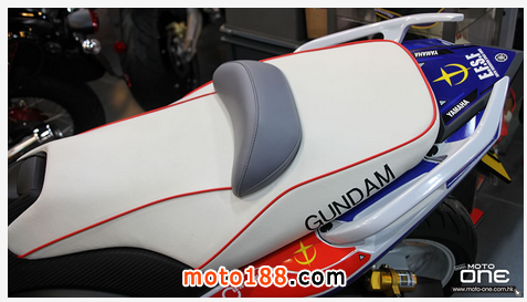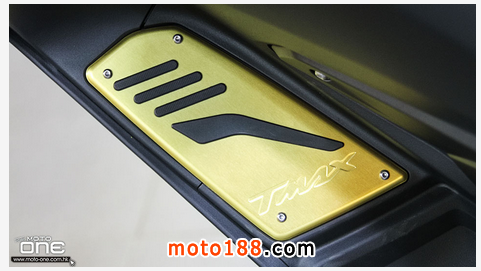 今次得到車主阿寶的同意拍攝及閑聊為何改裝,阿寶說希望新購買的2015 T-MAX 530有更特別的外觀,而自己屬標準的高達迷,所以新車未到己經找了專家貼紙的設計與制作,取車時即貼上這迷人吸引的高達花。相對年初時,現在這臺T-MAX 530還更換了金色的RIZOMA睹風鏡,像似高達頭上的尖角。另外,也換上原廠的金色的腳踏板及重新打造仿高達身軀色彩的座椅,令整體外觀更特別出眾。