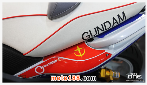 阿寶還希望可以配上高達頭盔,可惜有原廠推出多時的高達頭盔均屬限量發售,在市場上已經找不到。車主現托朋友在日本購買香港沒有的別致帽型頭盔,再找朋友重新設計高達拉花貼紙套上,真的充滿熱情。