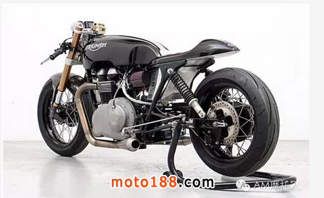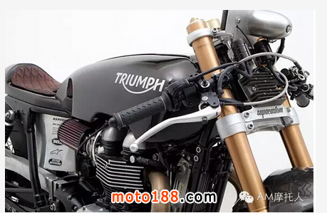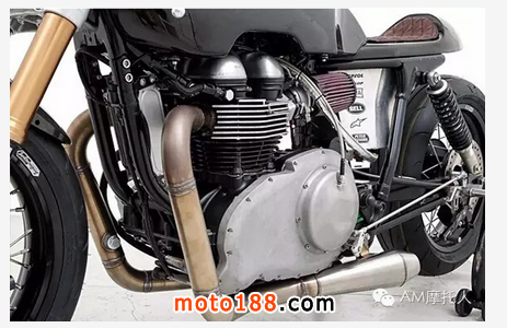 這輛2008款Triumph Thruxton經(jīng)過重度改裝,其引擎幾乎全部重制,不僅缸體被擴容至1000cc,此外活塞、連桿、套筒、缸頭等等全部更換或者加強。原本只有39匹馬力的雙缸引擎硬是被壓榨出110匹馬力,動力提升達到了近300%,讓人嘆為觀止。